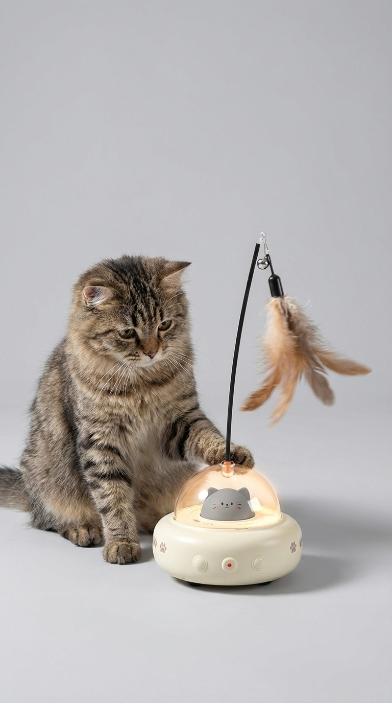 I didn’t expect my cat to love this as much as she does. She usually gets bored of toys fast, but this one keeps her running circles around the living room. The feather movement is super unpredictable so it really taps into her hunting instincts. It’s quiet, rechargeable, and doesn’t freak her out. The automatic shutoff is awesome too because she’ll play until she’s exhausted. Honestly one of the best toys I’ve bought for her... she even guards it when she’s done playing, like it’s her little UFO buddy.